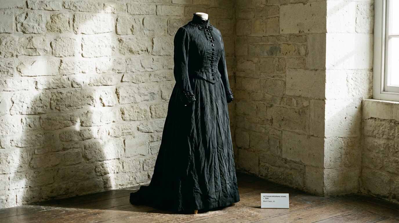 The Metropolitan Museum of Art’s Costume Institute holds one of the most instructive collections of 19th-century mourning dress in the world — and “instructive” is the right word, because what these garments reveal above all else is that Victorian mourning was not simply emotional expression. It was a precision system. The fabrics were legislated by grief’s stage: paramatta silk and wool crape in deep mourning, lustreless black silk permitted only when the heaviest period had passed, then half-mourning’s muted lilacs and soft grays as the prescribed codes slowly relaxed.