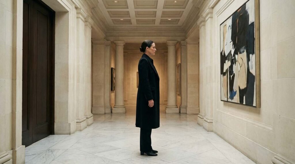 There is a particular kind of woman — I have met her at Christie’s previews, at Sotheby’s evening sales, at the kind of private showings where the catalog is printed rather than emailed — who wears only black. Not as a statement. Not as a pose. As a conclusion she has reached, quietly, about what she values and what she does not.