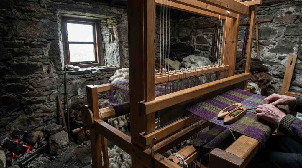 The Outer Hebrides are not, by most measures, a convenient place to sustain an industrial textile tradition. The landscape is magnificent and relentless — wind-flattened moorland, lochs the color of pewter, light that changes so rapidly it seems to have its own weather system. The villages where Harris Tweed is woven are small. The looms — wooden floor looms, each producing a noise the BBC Scotland documentary footage captures as a rhythmic, percussive thud — are kept in outbuildings attached to the weavers’ homes.