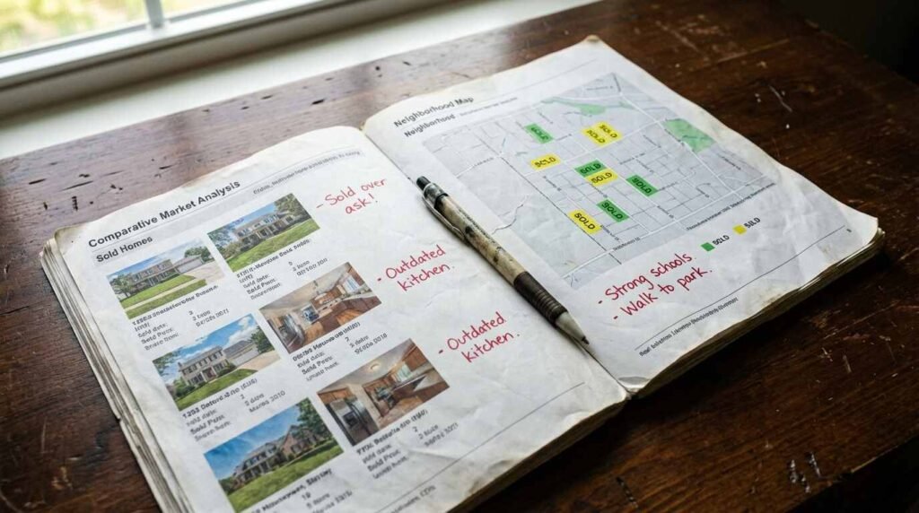 If they can’t answer that second question with specifics — actual addresses, actual numbers — that’s informative. A good agent working your neighborhood will know those comps the way you know your own driveway.