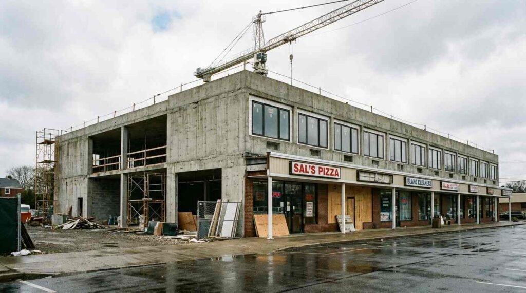 In Bay Shore, a multi-phase revitalization effort on the South Shore replaced blighted commercial blocks with 118 new residential units, a project that sparked additional private investment in the surrounding district and demonstrated that mixed-use residential conversion of underperforming commercial stock was acceptable to local planning boards and marketable to buyers. In Hempstead Village, two mixed-use buildings by Conifer-LeChase Construction containing 258 affordable units are under development, part of a Downtown Revitalization Initiative award that specifically targeted the conversion and replacement of obsolete commercial structures. Huntington Station, named Long Island’s winner of the sixth round of the Downtown Revitalization Initiative in 2023, has approved a slate of projects along New York Avenue that include new mixed-use buildings combining workforce housing and ground-floor retail — projects explicitly designed to replace underperforming commercial structures with building forms that can generate both residential density and pedestrian activity.