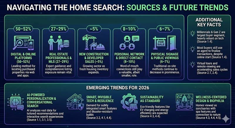 - 50–52% | Digital & Online Platforms The leading method for locating purchased properties via web and mobile apps.