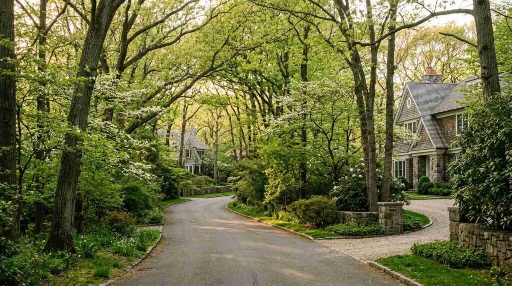 Matinecock today remains unincorporated, lightly developed relative to its neighbors, and expensive. The median home value is among the highest in Nassau County — a reflection partly of lot size, partly of architectural quality, and partly of what the market assigns to the specific combination of privacy, canopy, and community character that the hamlet has maintained. When I work with buyers who are drawn to this part of the North Shore, the conversation eventually arrives at what Matinecock is actually selling, which is not primarily a house. It is a position within a community that has decided, across many generations, what it wants to be.