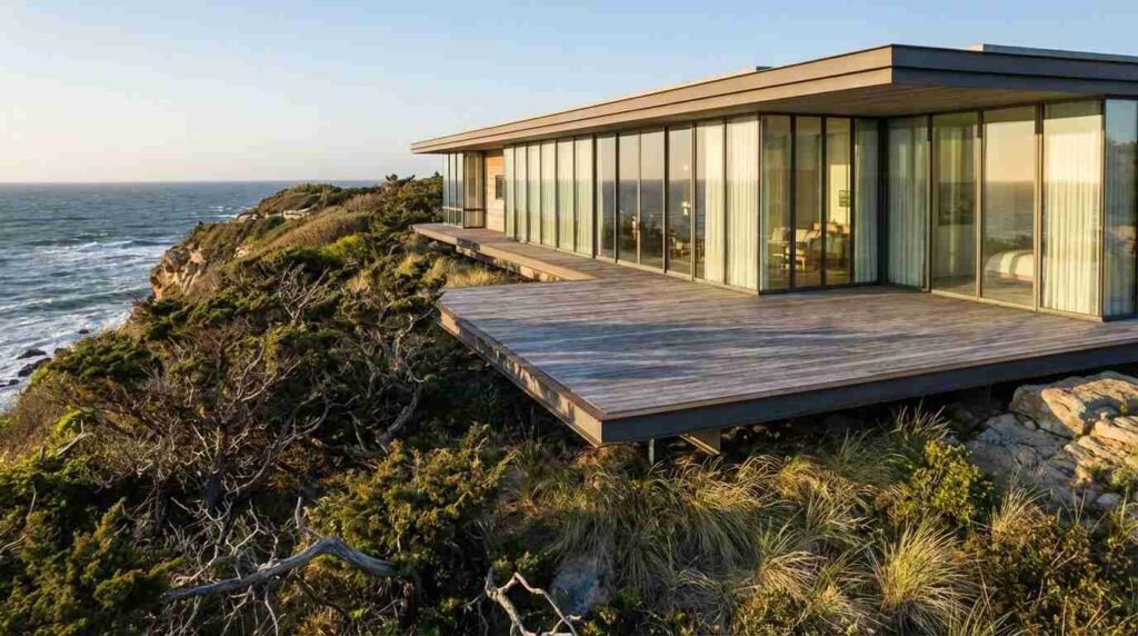 The residential market has tracked this shift with some precision. According to Town & Country Real Estate’s Hamptons market reporting, the median home price in Montauk reached $2 million — a figure that had once seemed improbable for a hamlet that prided itself on its resistance to the Southampton playbook. Zillow’s most recent home value index places the average Montauk home at approximately $1.7 million. The upper end of the market tells a more dramatic story: architect-designed homes on Old Montauk Highway, some with direct bluff-top ocean frontage, have traded in ranges that challenge what is achievable in far more established luxury corridors.