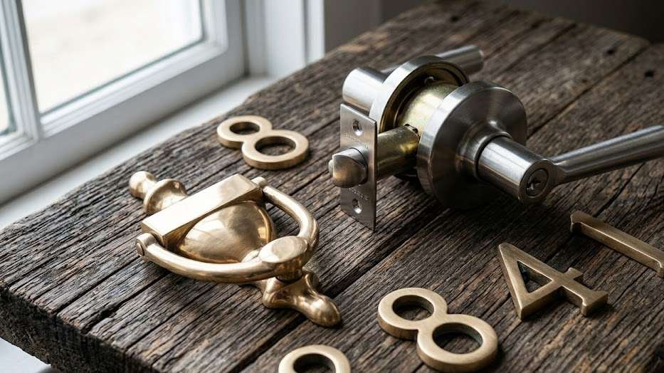 The hardware on a front entry, including door handle, deadbolt, kickplate, knocker, and house numbers, can be replaced comprehensively for a few hundred dollars in materials and a couple hours of labor. On a property listed at anything in the mid-six figures or above, this is not a meaningful expenditure. Its absence from a listing will be noticed.
