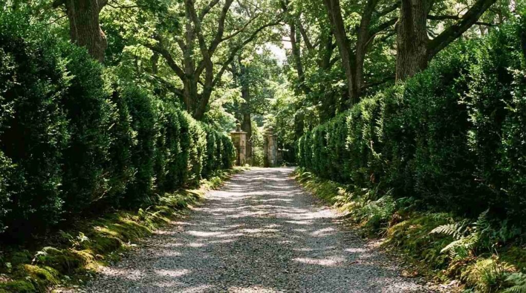 Drive through the village on a summer afternoon and you will notice something immediately: you cannot see the houses. The hedgerows are eight feet tall. The driveways are gravel-paved and curve out of sight. The signage, where it exists at all, is minimal and deliberate. A few gates. A few stone pillars. A sense that the real business of the place is conducted well back from the road.