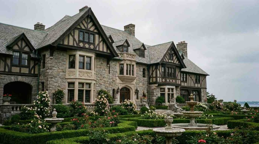 The architectural vocabulary across the estate-era properties reflects this. The Gould-era construction drew on Irish medieval and English Tudor traditions — both of which prized mass over ornament, stone over stucco, the fortress over the pavilion. Hempstead House’s exterior of granite and Indiana limestone was chosen not for elegance but for permanence. The Hunt & Hunt–designed structure was meant to look as though it had always been there, as though it had grown from the moraine itself.