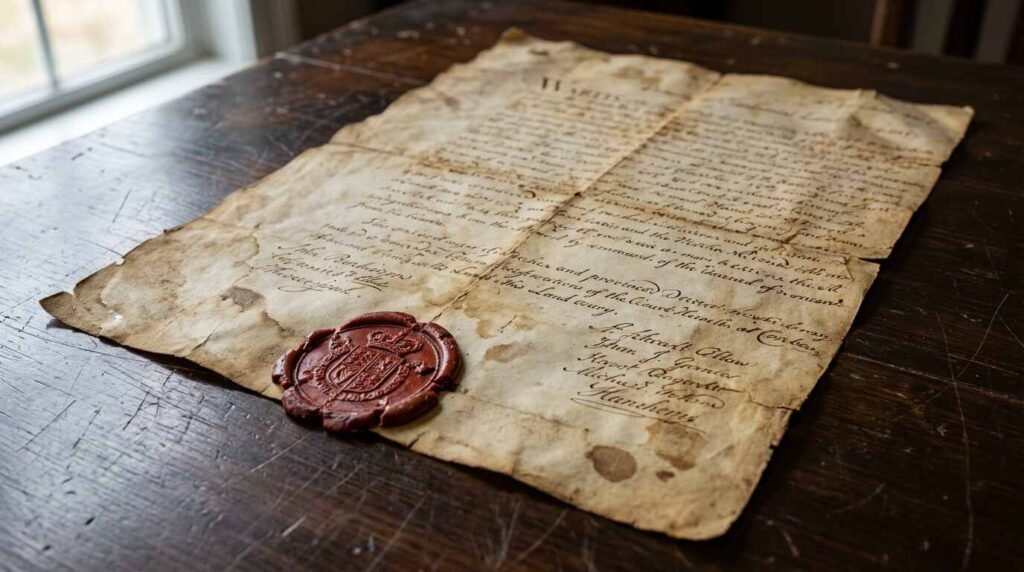 On March 3, 1665, the Royal Governor of the Colony of New York, Sir Richard Nicolls, granted Smythe a patent confirming his ownership. The Nicolls Patent required that Smythe settle ten families on the land within three years. It was a land grant in the colonial mode: political, transactional, and contested — Smythe spent the rest of his life in boundary disputes with Huntington, disputes that the courts eventually resolved in his favor.
