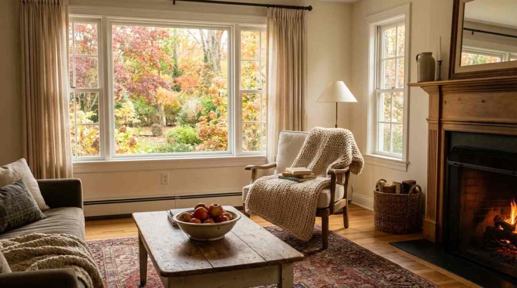 Stage for warmth. Spring staging is about lightness — throw open the windows, clear the surfaces, let the air in. October staging is about drawing the buyer in. Textiles matter more. The kitchen smells like something warm. The reading chair by the window with the view of the trees in color is not incidental; it is the pitch. I’ve seen buyers circle back to a house they visited once in October purely because they couldn’t stop thinking about what it felt like in there.