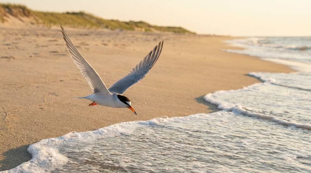 Least terns (Sternula antillarum) nest in colonies, often on the same barrier spits that piping plovers favor, and rely on the open sand that the permit corridors protect from trampling and vehicular compaction. They are more tolerant of human activity at the colony edge — they mob intruders aggressively — but colony abandonment in the face of sustained pressure is well documented. On beaches where ORV access is permit-controlled and timed to avoid the colonial nesting peak, least tern productivity improves by a margin that parallels outcomes at formally protected sites.