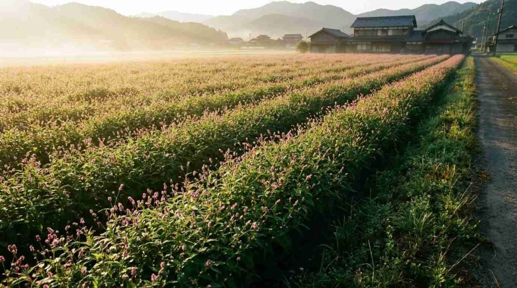 That is the standard accounting of what happens when a place is doing something that matters and has not yet been overrun by the infrastructure of people who have discovered that it matters. The ryokan where I stayed had four rooms. The road to the awa-ai cultivation fields outside Aizumi-cho narrowed to one lane and stayed that way for several kilometers. No signage. No gift shop at the end of it. Just fields of Persicaria tinctoria — Japanese indigo — in staggered rows, and the smell, which is unlike anything else, a living ferment that registers as both ancient and precise.