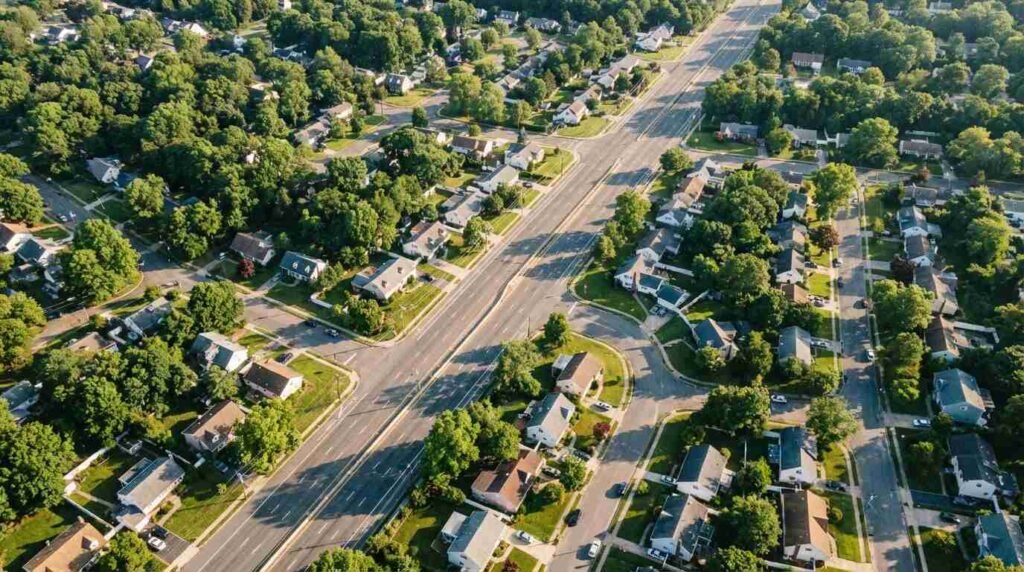 Lot shapes in areas that developed around the old corridor tend to be irregular. When developers were platting subdivisions around a pre-existing road or easement, they often created odd-angled lots, split frontages, and non-standard lot depths to absorb the constraint. Those irregularities can affect everything from setbacks to expansion potential.