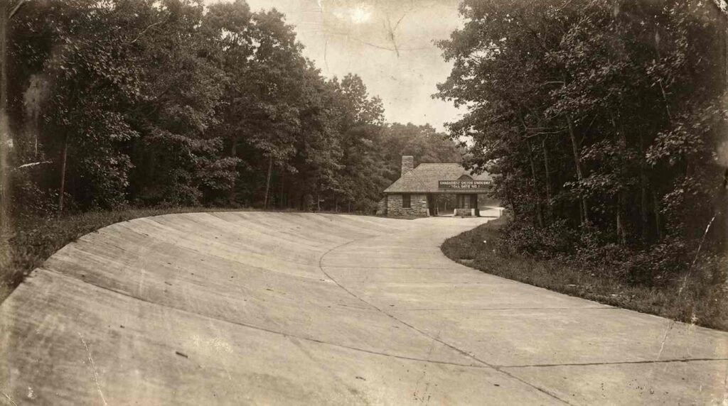 It isn’t. Some of that geometry has a specific origin, and that origin goes back more than a century, to a private road that a Vanderbilt built for sport and that Robert Moses eventually called a white elephant.