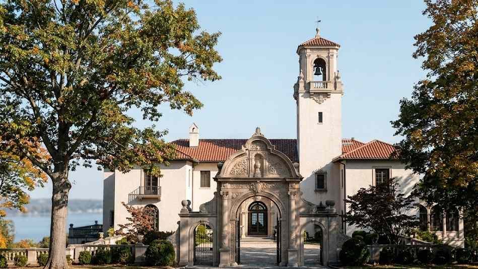 The drive up Little Neck Road in Centerport rises toward the water, and then the gatehouse appears — Spanish Revival arches, a bell tower, the suggestion of something Mediterranean dropped into the North Shore’s oak and locust woods. The Vanderbilt Museum does not announce itself quietly. Neither did the man who built it.