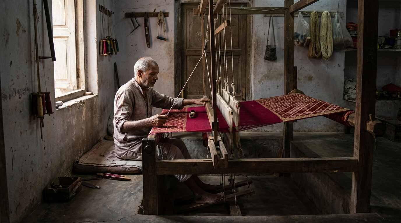 The Weavers Service Centre in Varanasi maintains official records of registered master weavers. The numbers are not large. The skills required — the ability to read and execute a naksha card pattern, to manage the tension of multiple threads in a kinkhab or a tanchoi weave, to know by touch whether the zari work (the gold and silver thread inlay) is correctly integrated into the structure rather than merely applied to its surface — accumulate over decades. There is no shortcut to this knowledge, and the industrial alternatives that have proliferated in recent years — power-loom imitations that can produce a visual approximation at a fraction of the cost — have made the real thing easier to identify precisely because the imitations cannot replicate what happens to Banarasi silk over time.