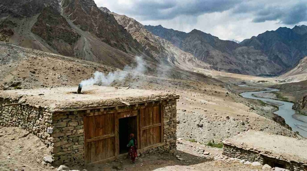 The landscape along the Panj is structurally unchanged from the Silk Road’s operational peak — not metaphorically, but geographically. The river valley narrows in places to a width where you can observe the opposite bank without optical aid. The Afghan Wakhan is unindustrialized; the settlements visible across the water are mud-brick and animal-pen and smoke. The Tajik side has a road. That is the significant infrastructure difference.