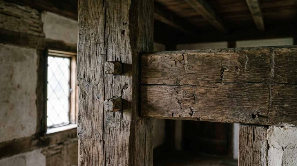 The mortise-and-tenon corner posts, with their original wooden pegs intact, are the structural element that most clearly encodes the tradition’s continuity. Mortise-and-tenon joinery is ancient and widespread; what makes the Whitman birthplace corner posts specifically Anglo-Dutch in character is the proportioning of the joints and the placement of the pegs relative to the tenon shoulders — details that Roderic Blackburn’s architectural history methodology, developed through his documentation of the Hudson Valley building tradition, provides a comparative framework for reading. [VERIFY: specific Blackburn methodology as applied to Long Island structures — his primary documented work is Columbia County, NY; confirm that his framework has been explicitly applied to Long Island examples before asserting this directly.]